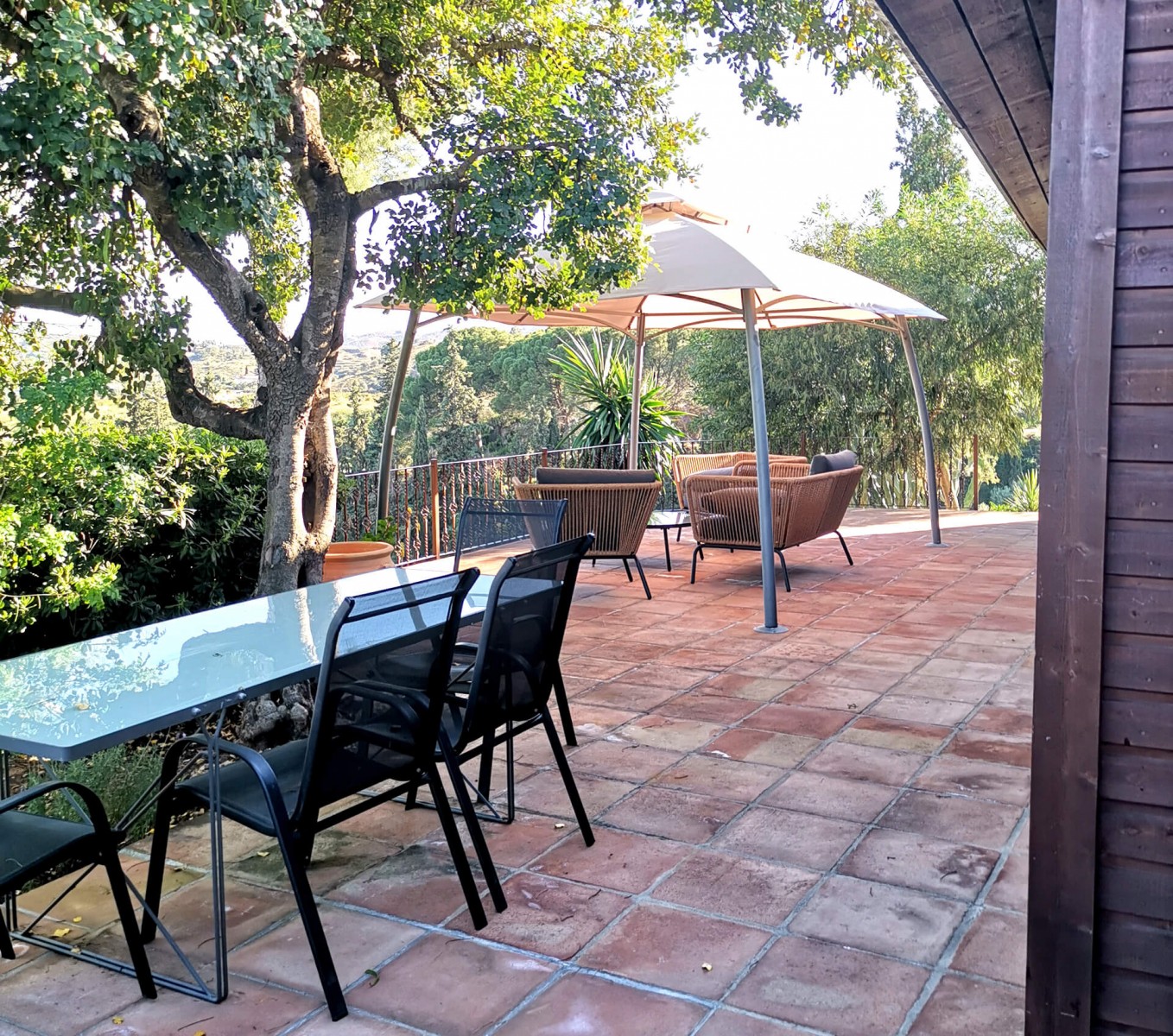 große Terrasse, Garten, Pool, PKW-Stellplatz, Sonnenliegen, Gartenmöbel, Gasgrill